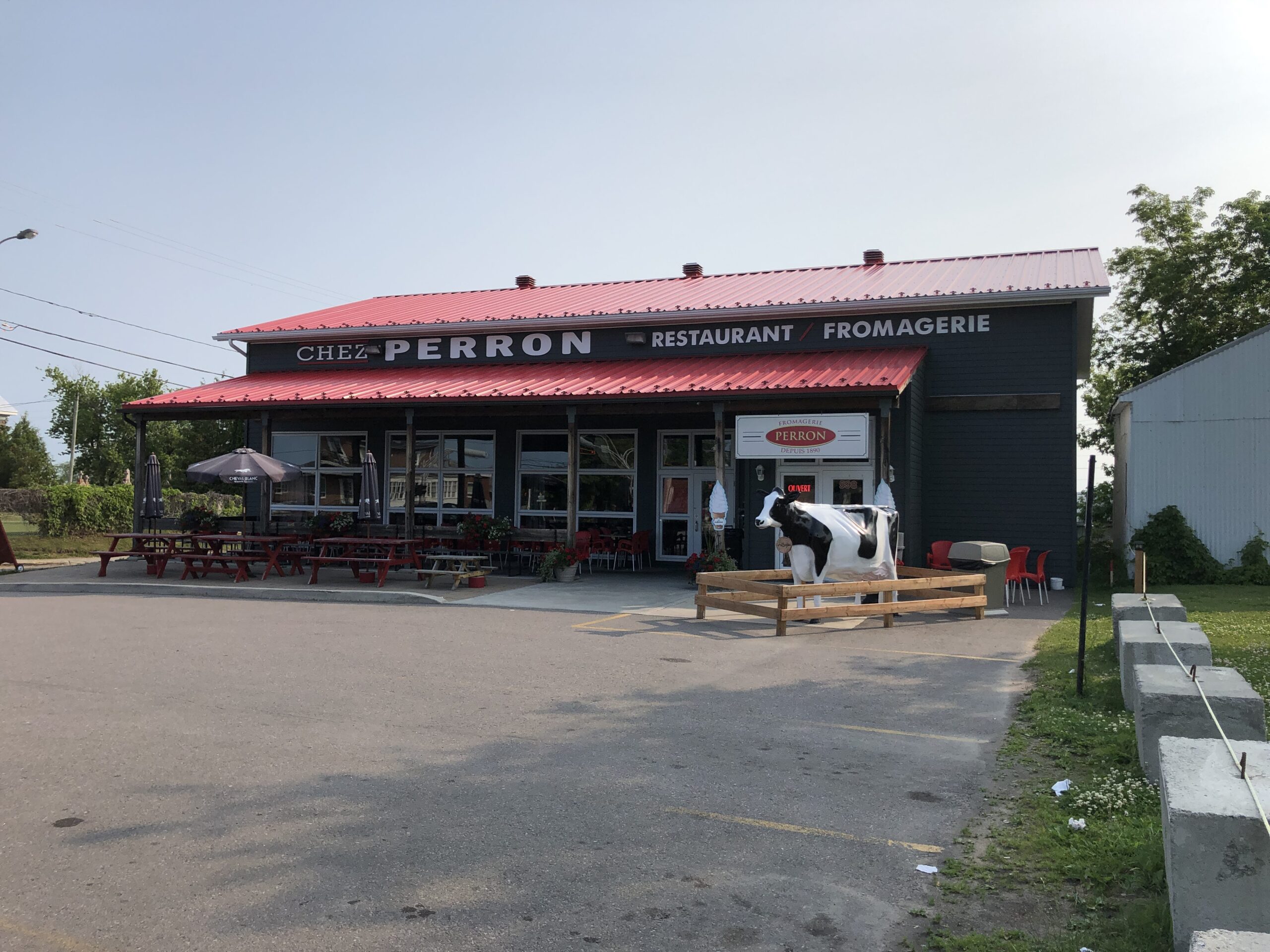 Avec sa grande terrasse ensoleillée en été, le restaurant de la Fromagerie Perron a su se démarquer grâce à ses menus pour emporter mettant en valeur les produits régionaux.